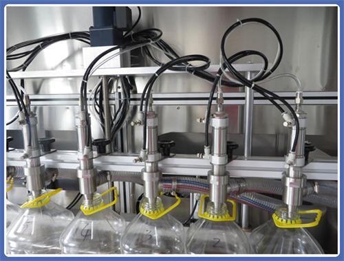 多頭直線食用油灌裝機集光,機,電,氣于一體,定量準確,灌裝精度高,操作簡單,維護方便,是食用油等產品灌裝的必備設備。設備采用優質SUS304不銹鋼制造,符合衛生要求.灌裝過程與外界隔離,保證灌裝的衛生要求,電器控制采用日本三菱PLC,法施耐等電器元件精確控制各氣動執行元件來完成灌裝過程,設備灌裝速度為:快慢雙速灌裝,灌裝速度可調,杜絕溢瓶現象。可廣泛應用于花生油,菜籽油,色拉油,橄欖油,調和油,豆油,香油,花椒油等油脂的自動化包裝生產。